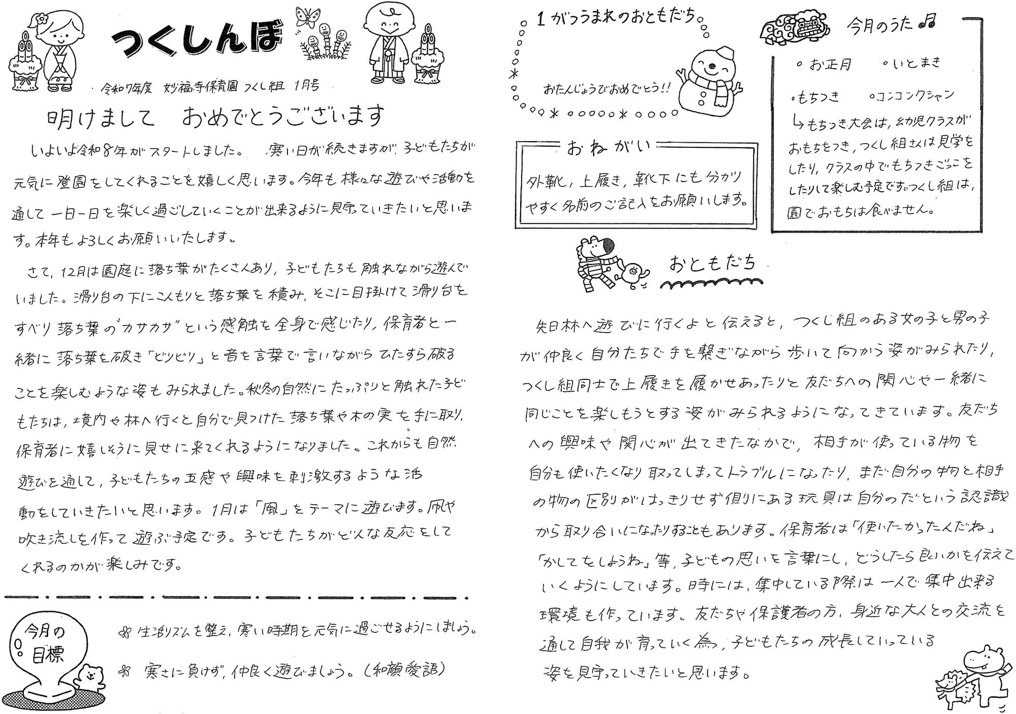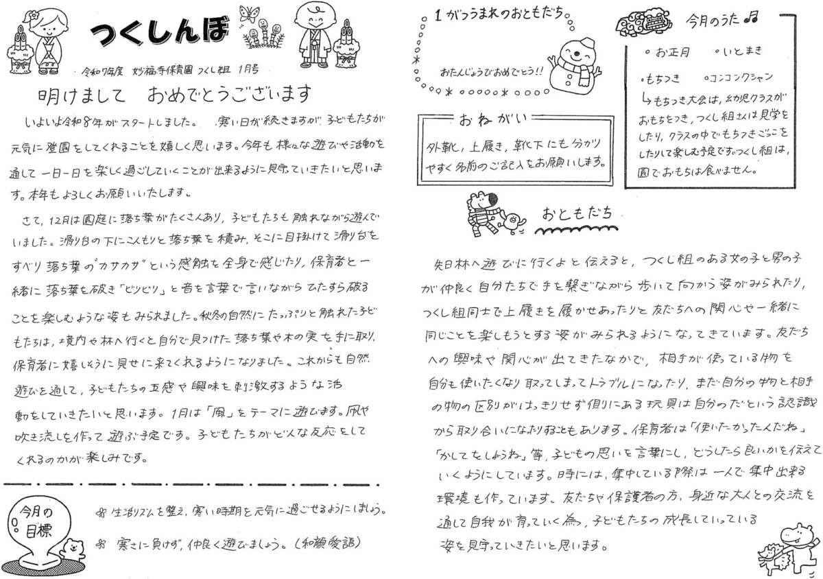 令和8年1月 1歳児つくし組